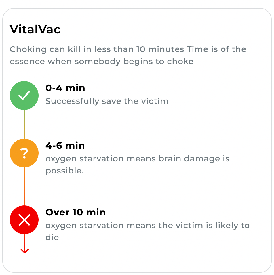 VitalVac is a patented life-saving device that is proven to be the most effective way to help a child or adult during a choking emergency.